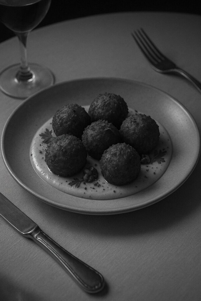 Golden risotto bites filled with wild mushrooms and parmesan, finished with a light herb aioli.